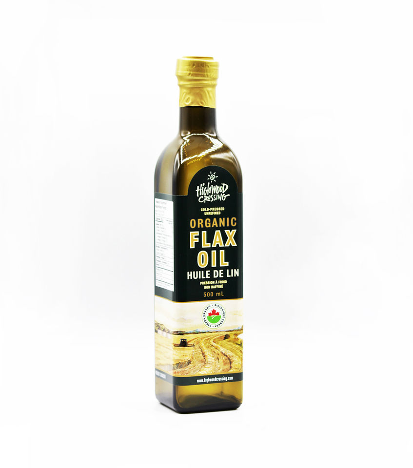 Highwood Crossing's Organic Cold Pressed Flax Oil tastes wonderful drizzled on vegetables, rice or pasta. Enjoy flax oil in place of butter with corn on the cob, new potatoes or any cooked vegetables. Flax Oil is often used in salad dressings, smoothies, mixed with protein powders, cottage cheese or yogurt or taken daily as a natural supplement. Our organic cold pressed flax oil is unrefined and non-GMO without additives or preservatives. Freshly pressed every week in a nut and peanut free environment with no traces of soy or dairy.